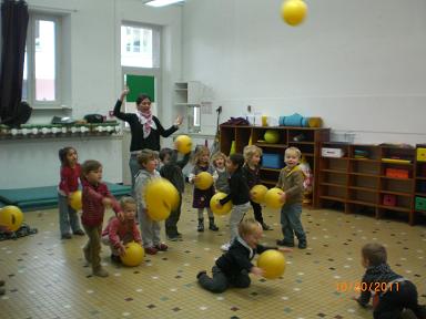 Jouer avec des ballons de baudruche en moyenne section, ce n'est pas simple mais cela leur plait beaucoup.